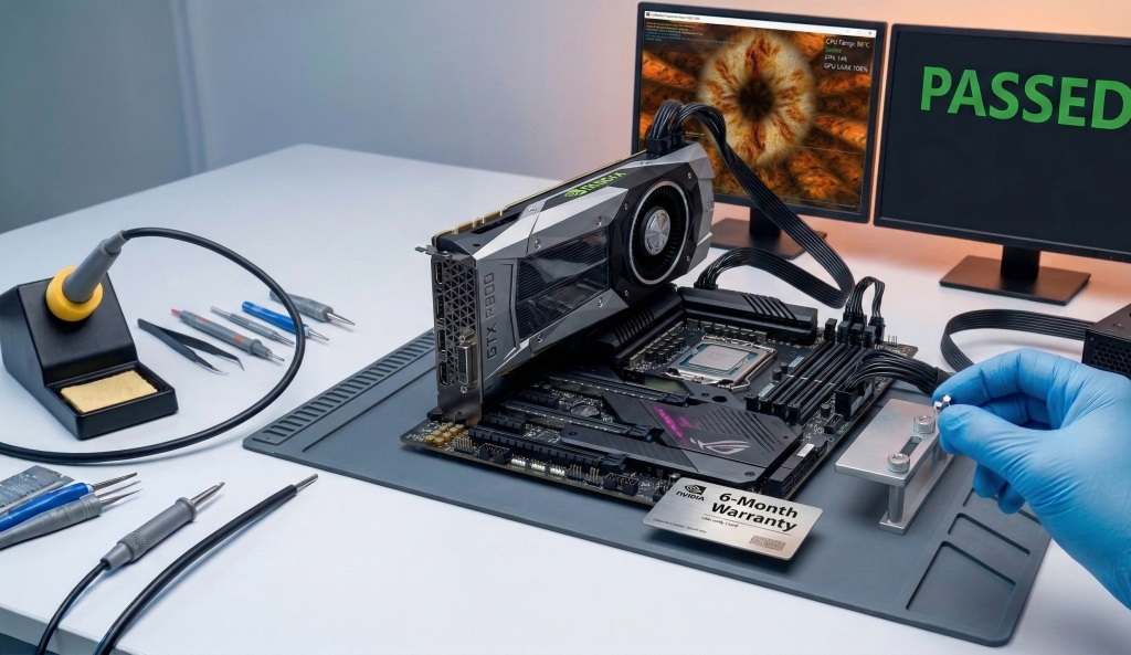 - Flasheo de vBIOS Original: Si detectamos que el software interno está corrupto, reescribimos la memoria EEPROM con la BIOS de fábrica exacta para tu modelo y ensamblador (Asus, Gigabyte, MSI, etc.).